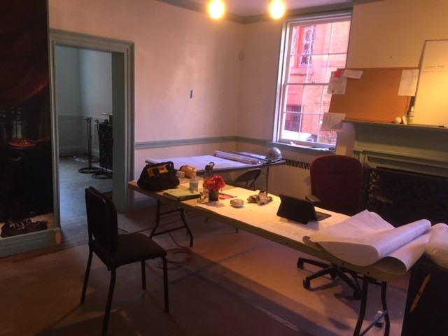 “Today really is the pits.” That was the clever subject line of an email chain last week between Peale board member William “Chick” Chickering and Jackson Gilman-Forlini, City of Baltimore Historic Preservation Officer, about the digging of the Peale’s elevator pit. Renovation work continued last week as the team exposed original brickwork and early 19th c. joists. Areas for the cafe and elevator shaft have also been laid out in the building.