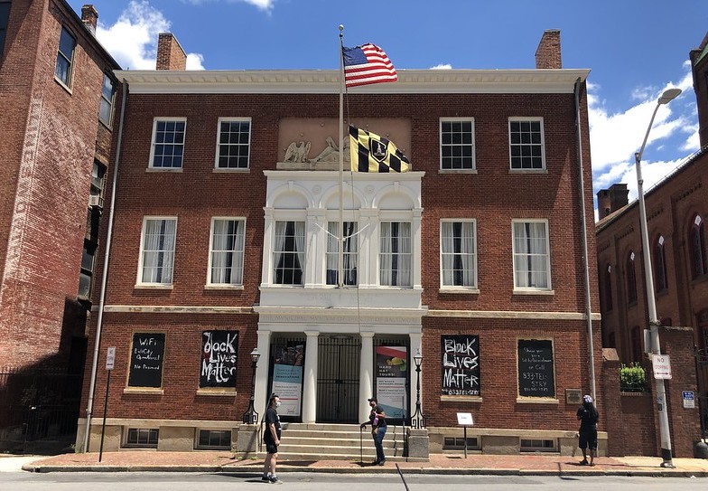 On June 7, 2020, Baltimore-based artist Jeffrey Kent, along with friends and family, installed his latest work on the front of the Peale building: two large Black Lives Matter banners. Jeffrey’s artwork is conceptual, informed by the historical and the personal, inextricably linked. His passionate investigation of issues related to the political and economic foundations of freedom and the role of responsible citizenship is the thread connecting all of Kent’s collections. We now find this same thread connecting different communities and peoples in this nation, all with the same call, simply: Black. Lives. Matter.