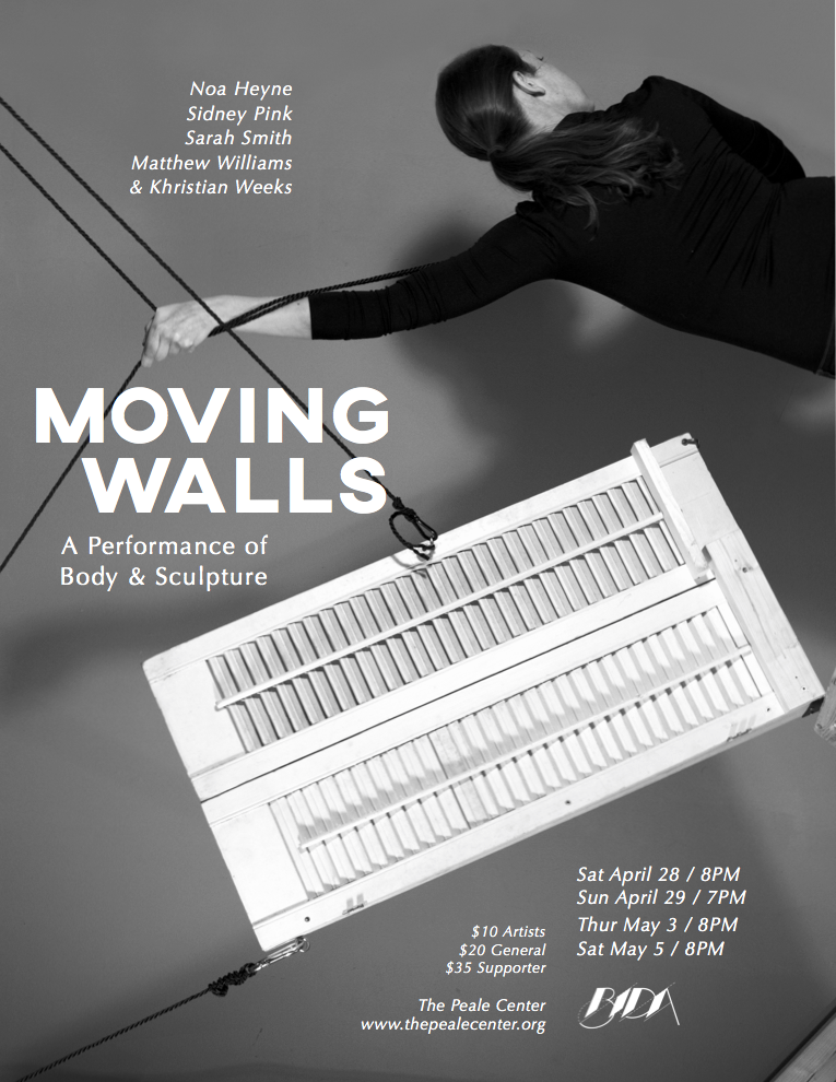 Moving Walls is an experimental dance piece that examines human experience in relation to architecture. Combining movement with sculpture, animation, and sound, the piece is a collaborative project that questions our concepts of stability. With wheels, ropes, pulleys, hooks, and hinges, three performers construct and deconstruct the space around them. In turn, they are influenced by their shifting surroundings.